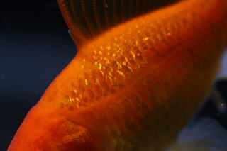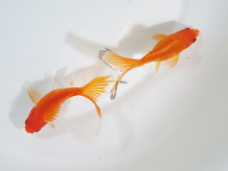 網透明鱗の美しい尾をもつ個体たちです