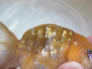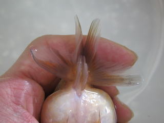 今回のお言葉を頂き、今後背鰭のない金魚に関しては今までの画像に加え背がハッキリわかる画像をお付けいたします。