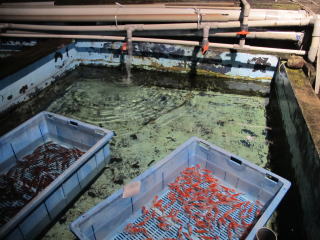 加須の市場での出荷魚 更紗和金 2歳かな?