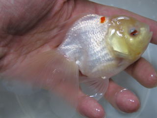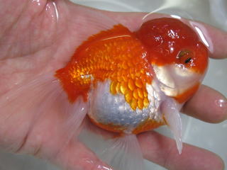 この子、先日の飯田琉金ちゃんの中に1匹だけいた六鱗。