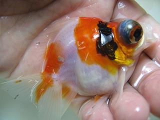 かわいいかわいい変わり柄の出目金です
