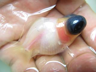 かわいいかわいい変わり柄の出目金です