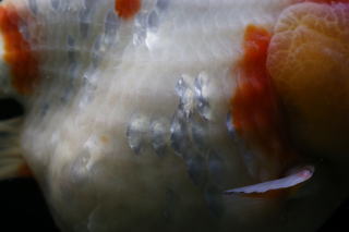 中国産 紅白透明鱗短尾獅頭