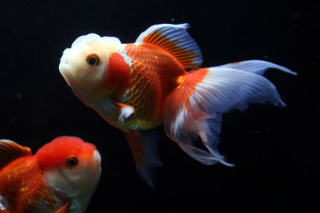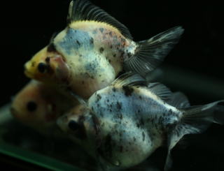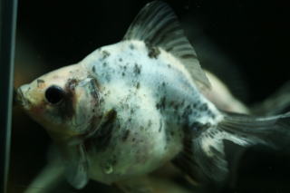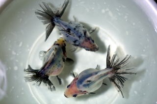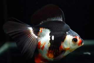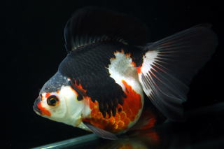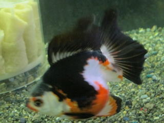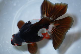 紅黒白寛尾琉金