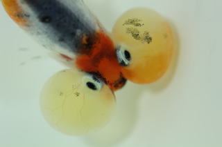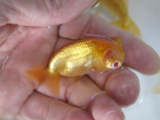 昨日連れてきた、国産で出目らんちゅう