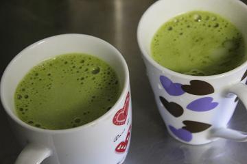 店長と仲良く朝から抹茶オーレ