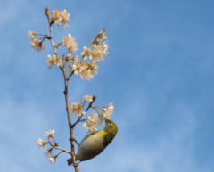今日はメジロがお花と戯れていました。
