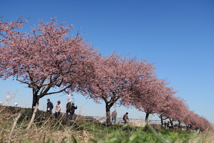 お昼休憩を利用して千葉県八千代市にある道の駅・やちよの裏に流れる花見川の土手にて行われていた河津桜まつりに行ってきました。
