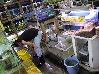 なかなか日中はメンテができないので、てんちょ~とスタッフ互野くん閉店後から水替えです!