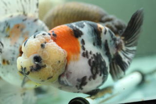 紅黒白網透明鱗蘭畴(三色紅葉らんちゅう)