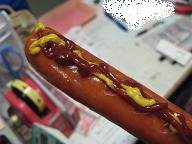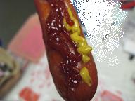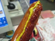 あまりにお腹が空いたので、みんなでジャンボフランクをほおばることに。