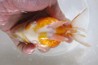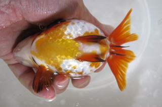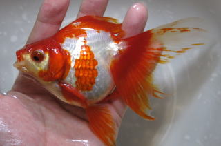 更紗模様の美しい琉金です