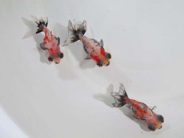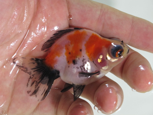 トリカラーショートテールリュウキンというインボイスネームで国内に入ってきていると思われる琉金たちの中に混じっていました。