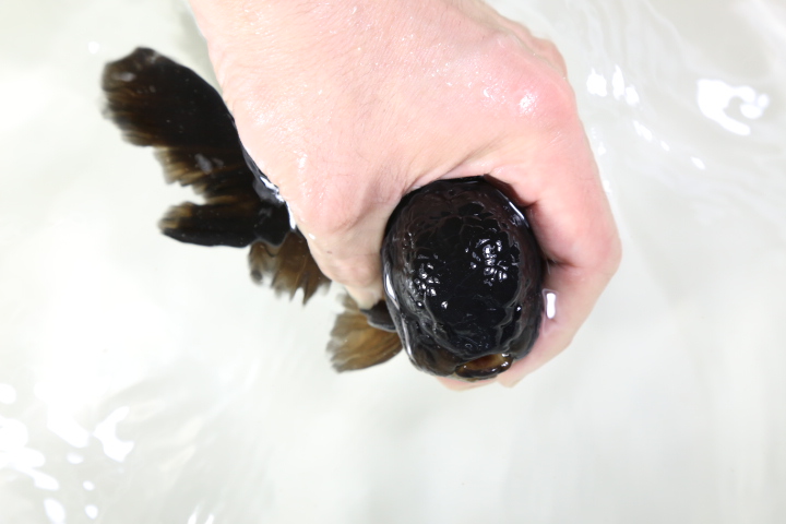 小さな個体を一般的な水槽で育てるものとは明らかに異なる大きさ、色合い、そしてこの体型