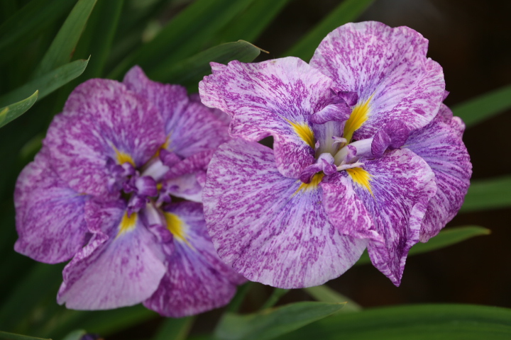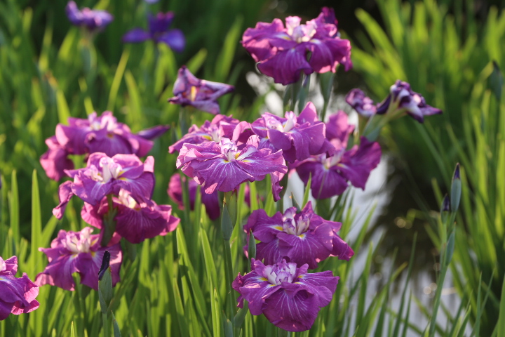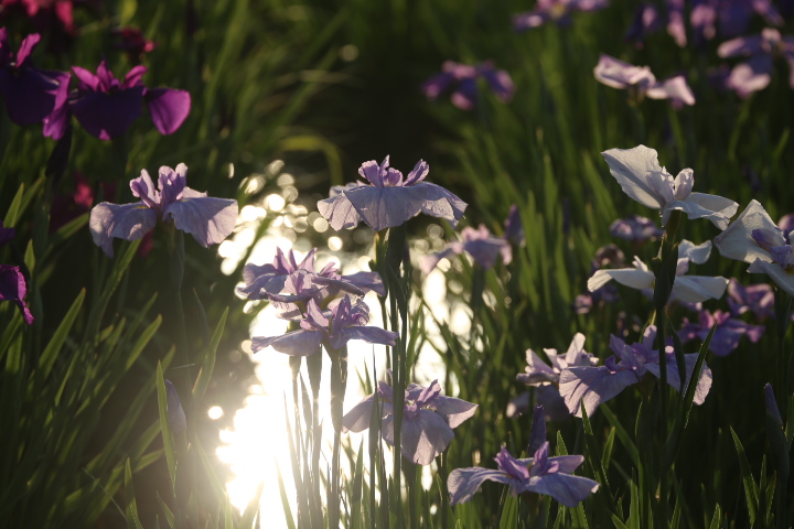 朝日を浴びた花菖蒲