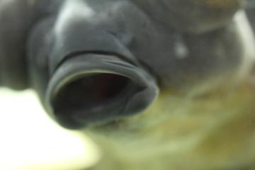 指を水面に近づけると指をパクパクしてくれるし