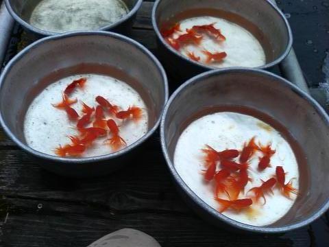 小赤きんぎょのほかにも出目などの変わった金魚も入っちゃってますよ!!