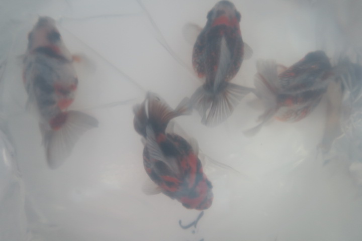 中国産 紅黒白寛尾琉金(ブロードテール) 墨クッキリ