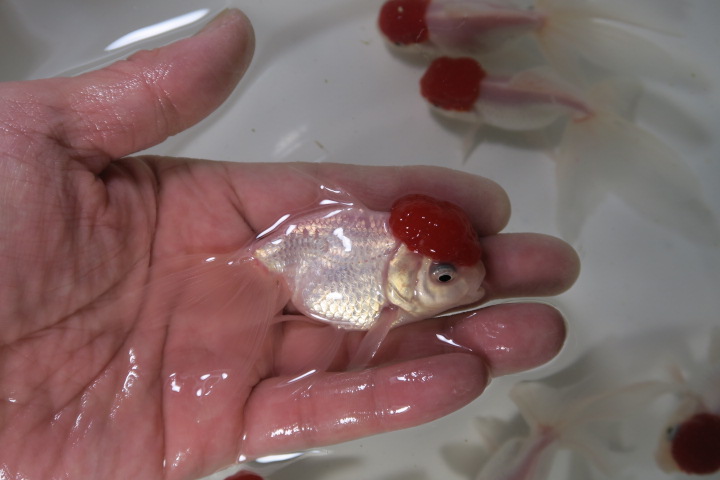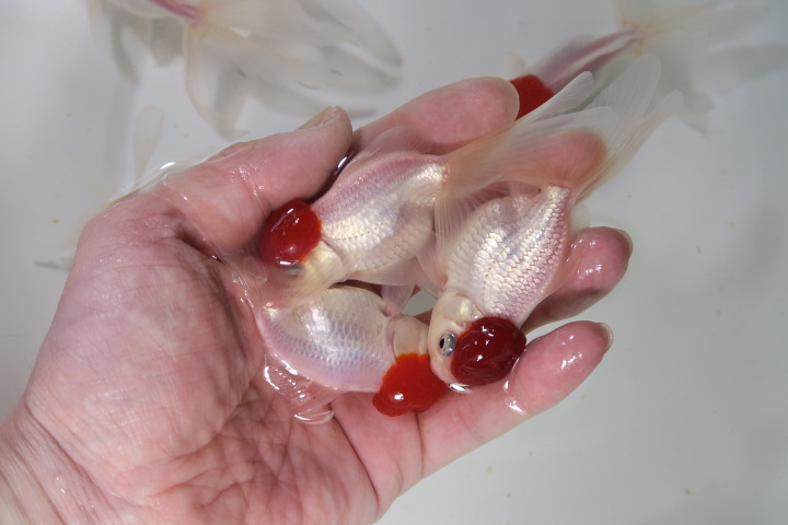 外国産 だるま琉金 紅白1 紅透明鱗1 体高ありあり