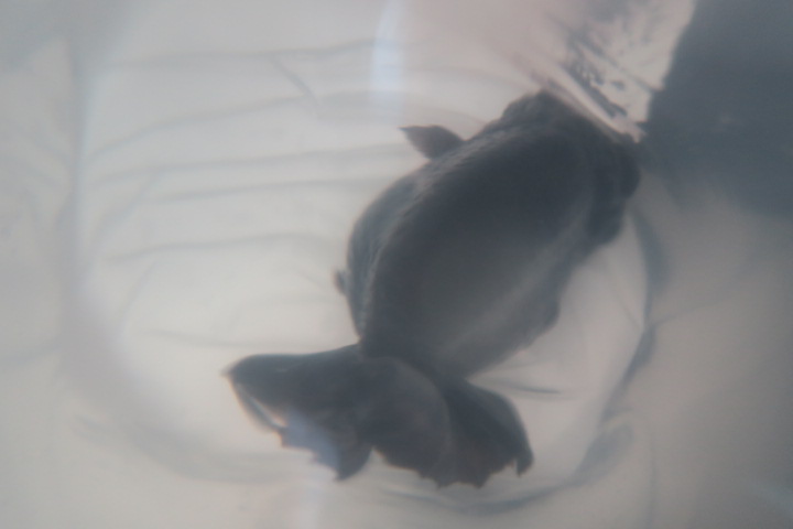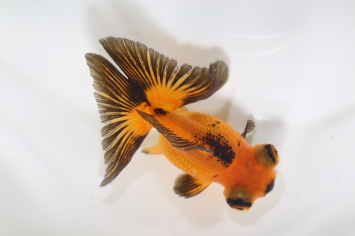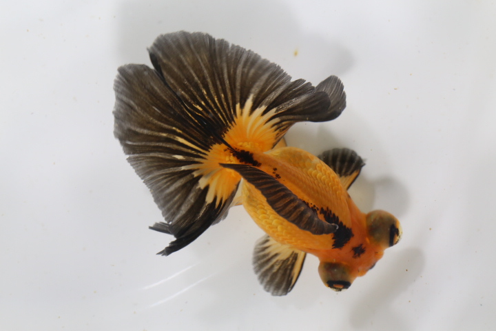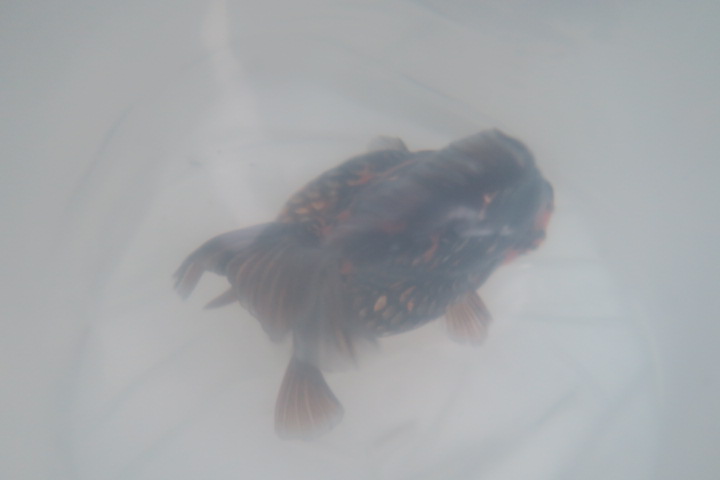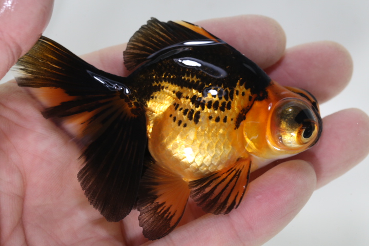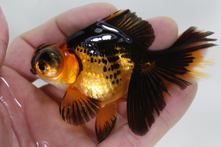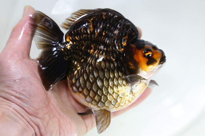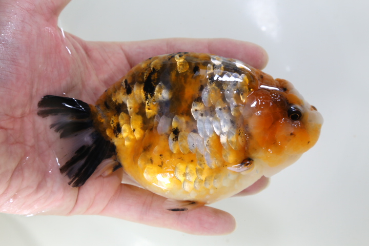 体高あるまん丸の短尾琉金 墨多めのかっこいい色彩の個体です。