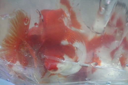 蝶尾 尾の形が綺麗な子を連れてきました。ただ尾の裂傷がありすぐには出荷できないかもしれません。