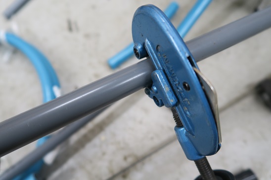 塩ビ管を切って。