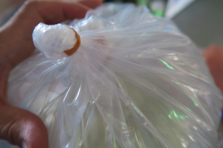 袋は2重で何回も輪ゴムで縛り